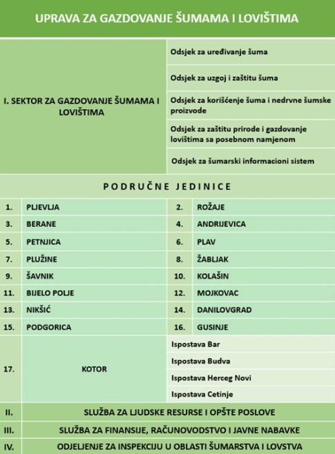 UPRAVA ZA GAZDOVANJE ŠUMAMA I LOVIŠTIMA ORGANIZOVANA JE NA TERITORIJALNOM PRINCIPU PO OPŠTINAMA U 17 PODRUČNIH JEDINICA I 4 ISPOSTAVE: